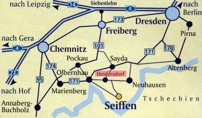 Erleben Sie Ihren Urlaub in Heidersdorf inmitten einer reizvollen Landschaft des Naturparks Erzgebirge/Vogtland. Von unserer Ferienwohnung aus bietet sich Ihnen ein herrlicher Blick über den Kamm des Erzgebirges mit dem Schwartenberg (789m) und dem Spielzeugdorf Seiffen. Es bestehen viele Möglichkeiten zur aktiven Freizeitgestaltung, z.B.: Wandern ab Haus (nach Seiffen ca. 5 km, nach Neuhausen ca. 5 km, nach Sayda ca. 3 km, nach Olbernhau ca. 5 km), Reiten, Wildgehege(4km), Skilift, Skiloipen, Fahrradwege, Erlebnisbad in Marienberg, beheiztes Freibad in Neuhausen..., oder einfach nur die Ruhe genießen und sich vom Alltag entspannen. Natürlich bietet unsere Umgebung auch allerlei kulturelle und historische Attraktionen wie z. B. Schlösser und Burgen, Schaubergwerke, Schmalspurbahnen und nicht zu vergessen die Erzgebirgische Volkskunst.